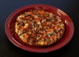 Our signature pizza sauce, five cheese mozzarella blend, pepperoni slices, crumbled pork sausage, Canadian bacon, & ground beef crumbles.
